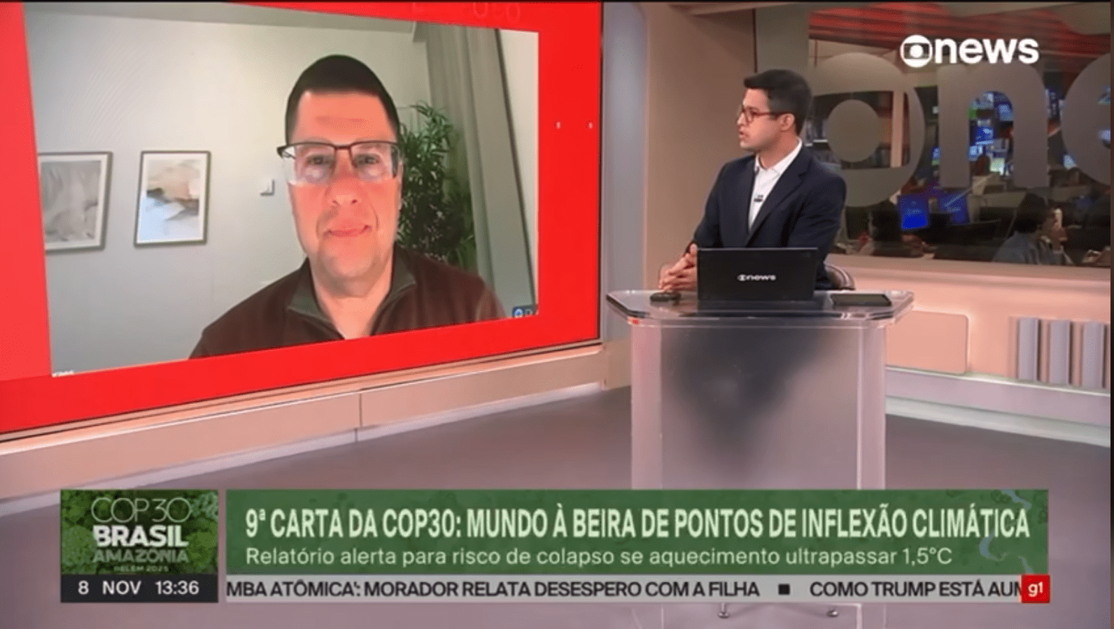 No dia 8 de novembro, o professor Claudio de Moraes participou do Jornal GloboNews – Edição Meio-Dia, em que ele analisou a relação entre a realização da COP30 no Brasil e os eventos climáticos extremos que vêm ocorrendo no país, como o recente tornado que atingiu o estado do Paraná, e o que eles indicam para a agenda de sustentabilidade nacional. Confira alguns trechos da reportagem: